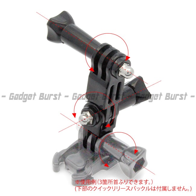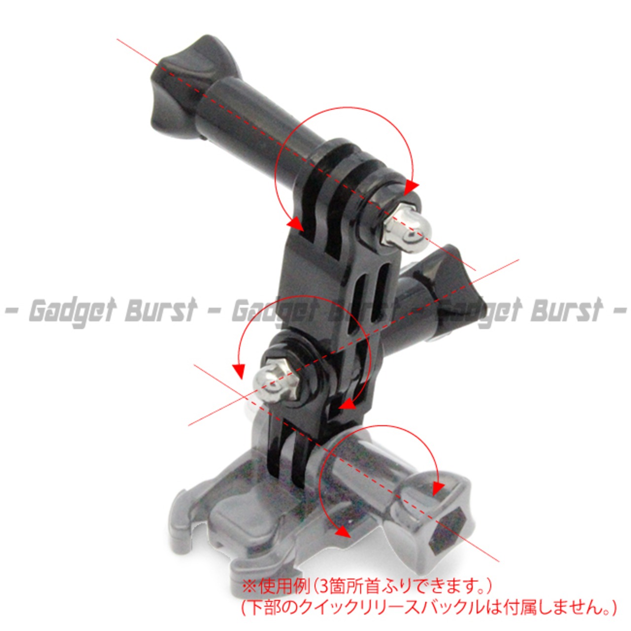 本品は、GoProカメラとクイックリリースバックル各種の間に取り付けて使用する3WAYピボットアームです。