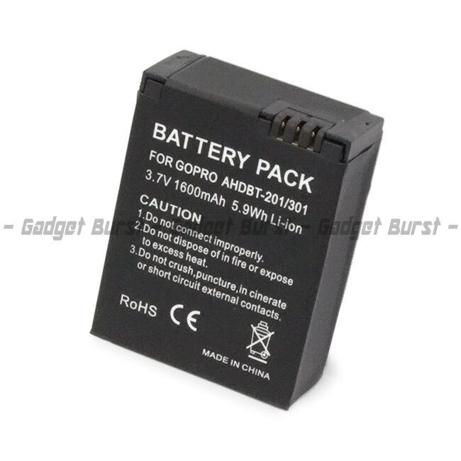 ■品名/【GB origin】 GoPro(ゴープロ)互換 Li-ionバッテリー3.7V 1600mAh AHDBT-201/301タイプ(HERO3+,3)1個
